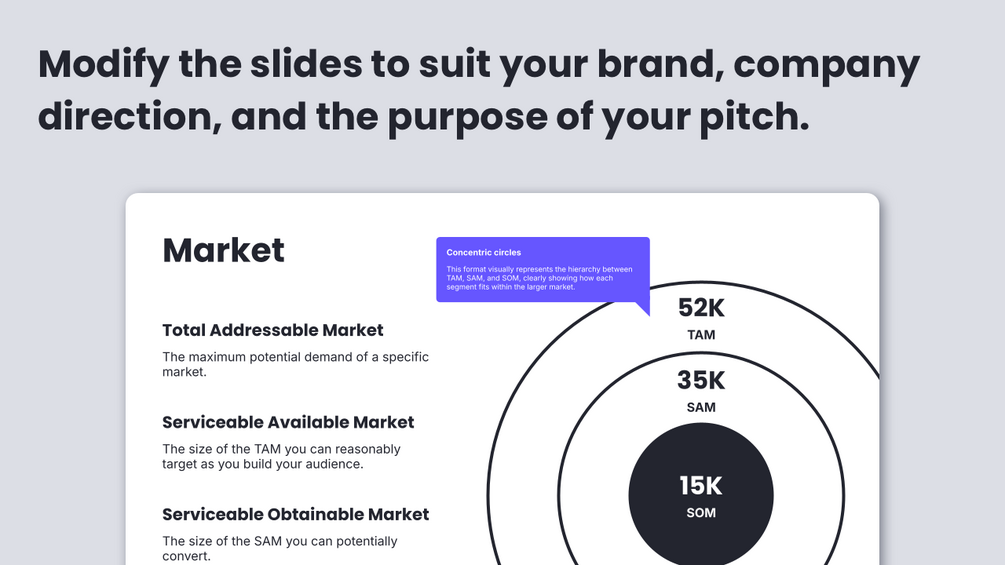 - Guided tooltips: Provide instant guidance and clarity, helping you navigate the pitch deck creation process with ease